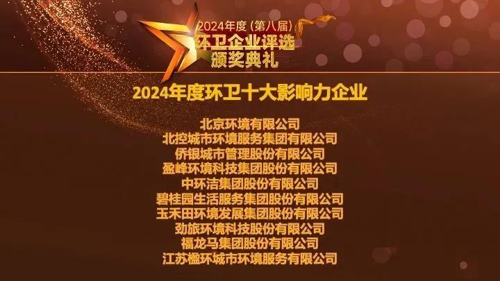 近日,在由E20环境平台主办的“2024(第十八届)固废战略论坛”上,劲旅环境荣膺“2024年度环卫十大影响力企业”,连续第八年获此殊荣。