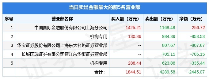 从龙虎榜公布的当日买卖数据来看,机构合计净卖出1188.97万元。