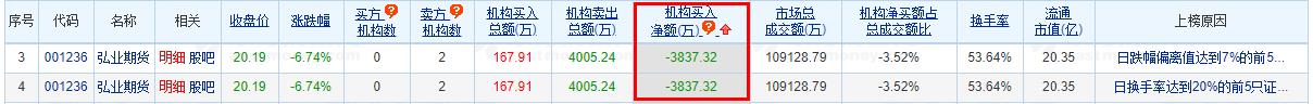 龙虎榜数据显示,卖出弘业期货金额最大的前五名中,有2家机构专用席位。经统计,弘业期货的机构席位今日净卖出金额为3837.32万元。