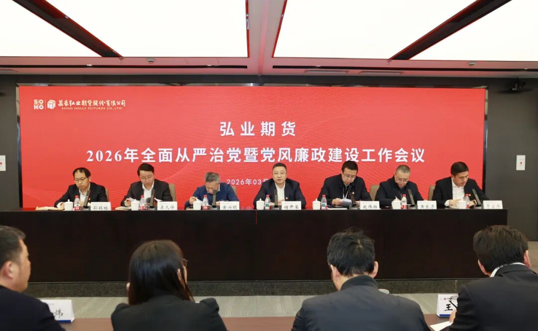 3月13日,弘业期货召开2026年全面从严治党暨党风廉政建设工作会议,深入学习贯彻党的二十届四中全会、中央纪委五次全会精神,落实十四届省委十次全会、省纪委六次全会和省属企业、苏豪控股集团全面从严治党工作会议要求,总结公司2025年工作,安排部署2026年全面从严治党暨党风廉政建设重点任务,为公司高质量发展筑牢政治保障。公司党委书记、董事长储开荣出席会议并讲话,公司总经理、党委副书记赵伟雄主持会议并传达上级有关会议精神,纪委书记黄东彦作公司纪检工作报告。