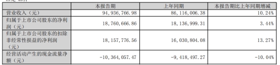 博菲电气4月25日披露2023年第一季度报告显示,报告期内,博菲电气营业收入9493.68万元,同比增长10.24%;归属于上市公司股东的净利润1876.07万元,同比增长3.44%;归属于上市公司股东的扣除非经常性损益的净利润1815.78万元,同比增长13.27%;经营活动产生的现金流量净额-1036.41万元,同比下降10.04%。