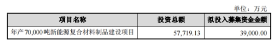 本次向不特定对象发行可转换公司债券募集资金总额不超过39000.00万元(含39000.00万元),扣除发行费用后的募集资金净额拟投资于年产70000吨新能源复合材料制品建设项目。