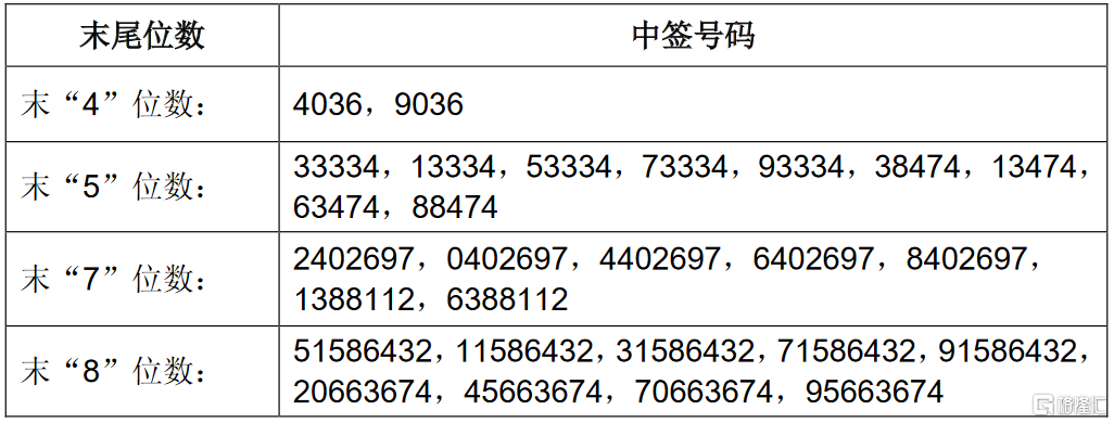 凡参与此次网上定价发行的投资者持有的申购配号尾数与上述号码相同的,则为中签号码。中签号码共有64177个,每个中签号码只能认购500股浙江炜冈科技股份有限公司A股股票。