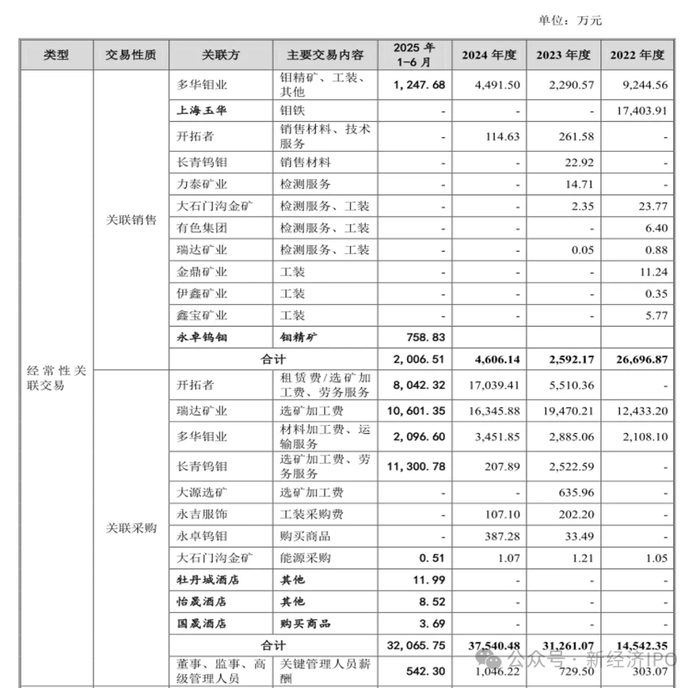 数据显示,2022年-2024年,盛龙股份关联方多华钼业、上海玉华发生经常性关联销售,各期合计金额占营业收入比例分别为13.94%、1.17%、1.57%,且多华钼业、上海玉华均为盛龙股份 2022年前五大客户;与此同时,盛龙股份与关联方瑞达矿业、开拓者、多华钼业、长青钨钼发生经常性关联采购,各期合计金额占营业成本比例分别为14.96%、38.66%、26.39%。不难看出,盛龙股份在销售及采购两端均依赖于关联方,企业经营独立性遭到普遍质疑。
