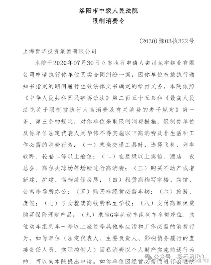 据盛龙股份披露,育华集团成立于2008年5月,控股股东为自然人邢育德,持股比例为51%,其在上海市、洛阳市、栾川县控制或参股了多家钼产业链相关企业。但据天眼查信息显示,育华集团涉及司法案件48条,其中身为被告的案件30条,涉案金额为2.85亿元。此外,2022年-2024年期间,育华集团的参保员工人数均为0人。2022年5月,育华集团曾被洛阳市中级人民法院列为失信被执行人,公司及其法定代表人同时被“限高”。