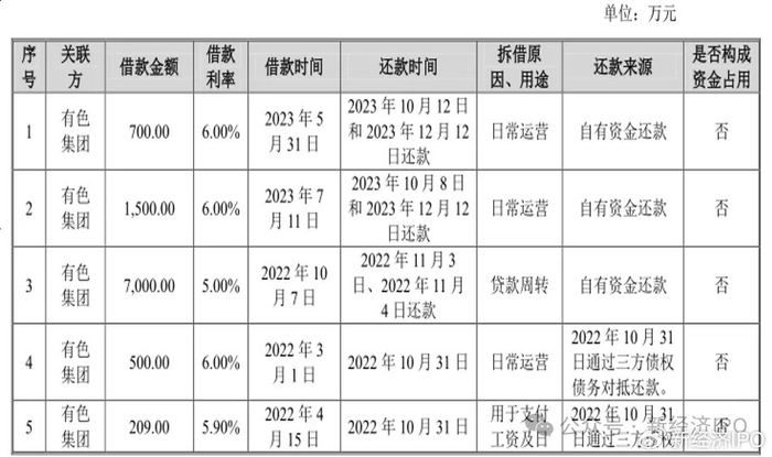 除了错综复杂且金额巨大的关联交易之外,盛龙股份与关联方之间的资金拆借问题也非常突出。招股书显示,2022年,盛龙股份向有色集团、天业投资分别借款9,769.00万元、513.52万元,并向新发展建材、大石门沟金矿分别提供借款500.万元、89万元。2023年,盛龙矿业向有色集团借款 2,200万元,同时又向向永吉服饰提供借款450万元。报告期内,盛龙股份还存在向有色集团、永卓钨钼以及多华钼业等关联方提供担保、向城投集团反担保的情形。