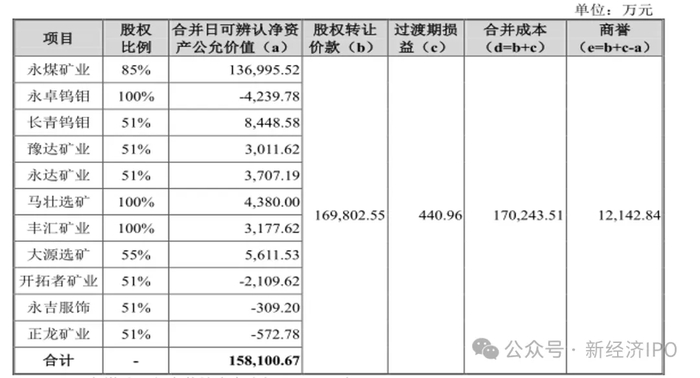 事实上,从事后的资产收购来看,盛龙股份上述未独立聘请第三方评估机构进行股权评估这一程序性瑕疵已经给公司带来了一定商誉风险。据悉,2021年2月,盛龙股份将从第三方永煤集团购买的 11 家钼板块公司股权进行合并,本次交易构成非同一控制下企业合并。为此,盛龙股份聘请北京中天华资产评估有限责任公司,对收购的 11 家公司于合并日的合并对价分摊所涉及相关资产和负债的公允价值出具中天华资评报字[2024]第 10254 号资产评估报告。该评估基准日为 2021年2月28日,最终确定上述 11 家公司合并日可辨认净资产公允价值为158,100.67万元。