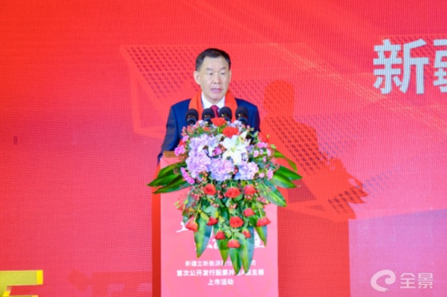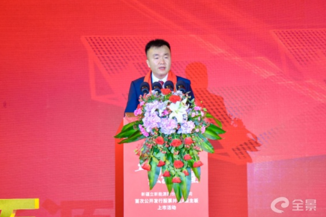 新疆维吾尔自治区人民政府国有资产监督管理委员会党委书记、副主任胡开江;新疆新能源(集团)有限责任公司党委书记、董事长高建军;申万宏源集团及申万宏源证券党委委员、申万宏源证券副总经理、执委会成员,申万宏源证券承销保荐有限责任公司董事长张剑等嘉宾莅临上市仪式现场,对立新能源成功登陆深交所致辞表示祝贺。