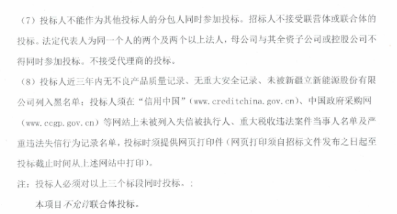 公告要求投标人必须具有电化学储能系统产品或电芯、PCS、EMS主要部件中至少一个核心产品的自主研发及生产能力,近三年在中国境内至少具有3个单体容量不低于20Wh的电站储能系统(磷酸铁锂电池)集成项目(至少包含电池预制舱、EMS、PCS)业绩,且同时具有总容量不低于300MWh的电化学储能系统相关业绩。