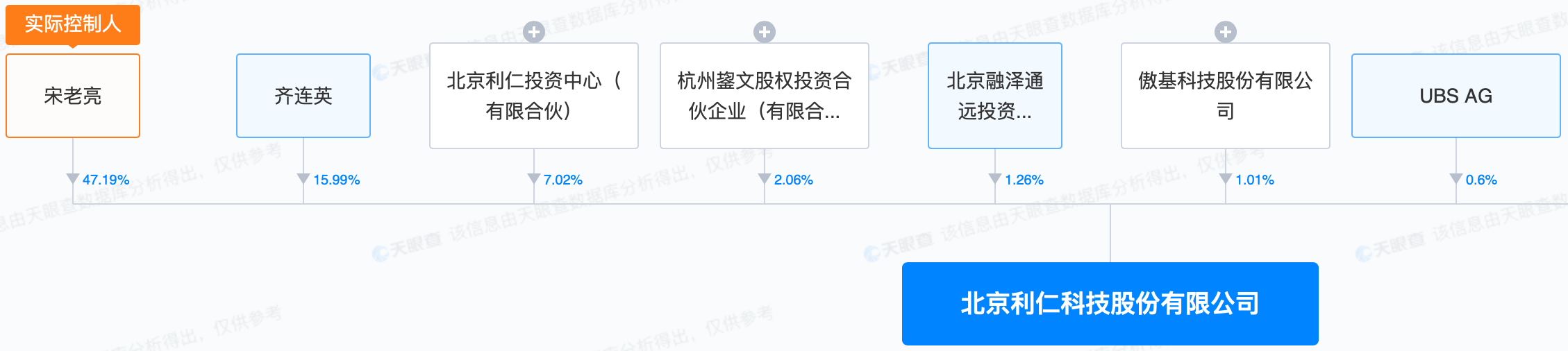 如今,宋老亮与妻子齐连英依旧是利仁科技的第一和第二大股东,分别直接持股47.19%和15.99%,此外,齐连英还通过利仁科技第三大股东“北京利仁投资中心(有限合伙)”间接持股。最终宋老亮夫妇合计持股超过60%,宋老亮为利仁科技的实际控制人,夫妻两牢牢掌握着公司的话语权。