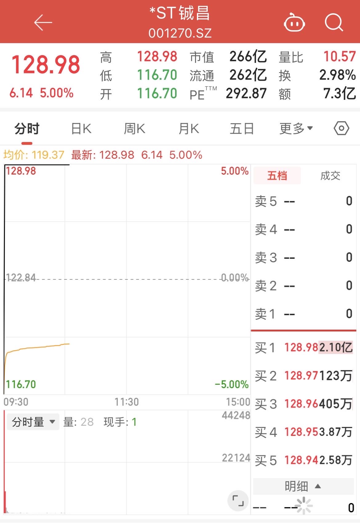 1月16日,商业航天大牛股*ST铖昌(001270.SZ)复牌后上演地天板”行情,开盘后一分钟内从跌停直线拉升至涨停,截至10时51分,该股成交额7.3亿元,涨停板封单金额高达2.1亿元。