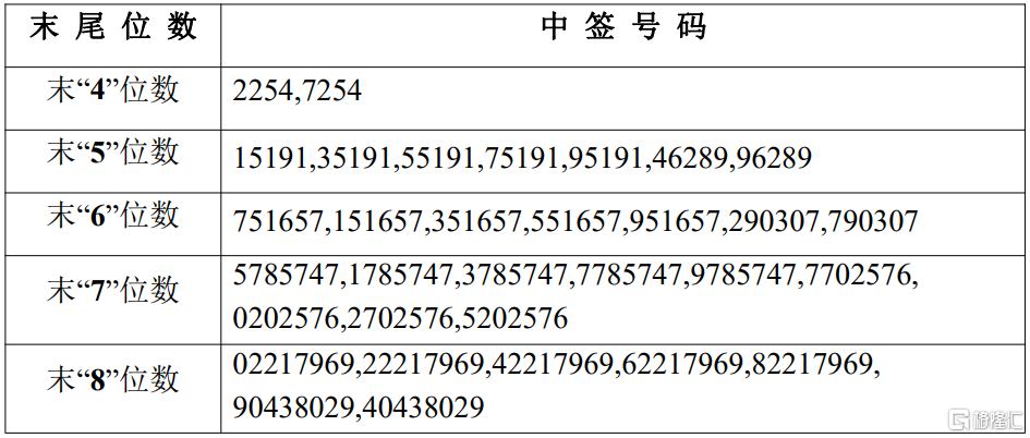 凡参与网上定价发行申购“一彬科技”A股股票的投资者持有的申购配号尾数与上述号码相同的,则为中签号码。中签号码共有55681个,每个中签号码只能认购500股“一彬科技”A股股票。