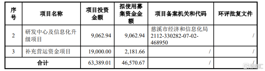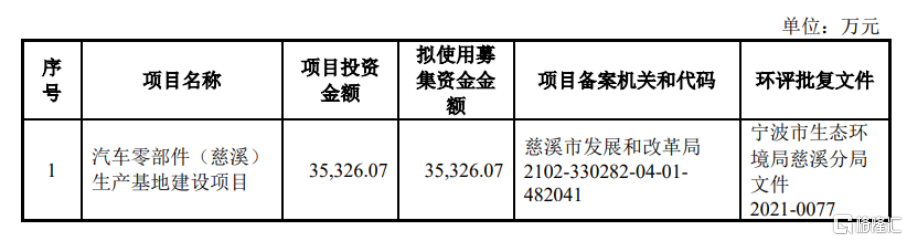 本次IPO拟募集的资金用于汽车零部件(慈溪)生产基地建设项目、研发中心及信息化升级项目、补充营运资金项目。