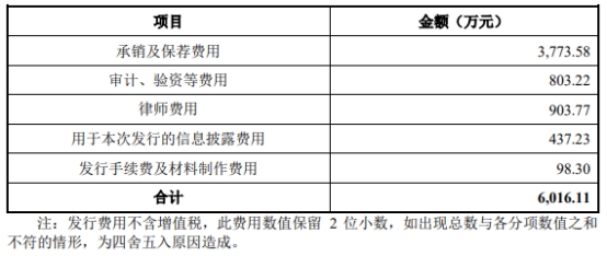 一彬科技本次发行费用(不含税)合计为6,016.11万元,其中民生证券股份有限公司获得承销及保荐费用3,773.58万元。