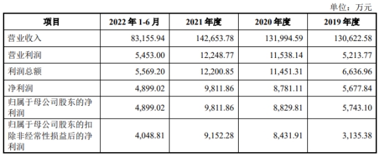 2019年、2020年、2021年和2022年1-6月,一彬科技营业收入分别为130,622.58万元、131,994.59万元、142,653.78万元、83,155.94万元,净利润分别为5,677.84万元、8,781.11万元、9,811.86万元、4,899.02万元,归属于母公司所有者的净利润分别为5,743.10万元、8,829.81万元、9,811.86万元、4,899.02万元,扣除非经常性损益后归属于母公司所有者的净利润分别为3,135.38万元、8,431.91万元、9,152.28万元、4,048.81万元。