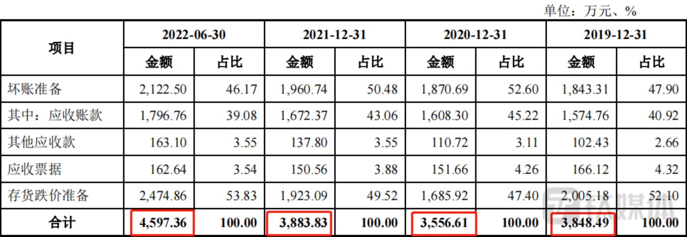 另一方面,市场也担心公司资产减值有吞噬利润的可能。报告期各期末,一彬科技资产减值准备余额分别为3,848.49万元、3,556.61万元、3,883.83万元和4,597.36万元,主要系应收账款、应收票据、其他应收款所计提的坏账准备和存货跌价准备,其构成情况如下: