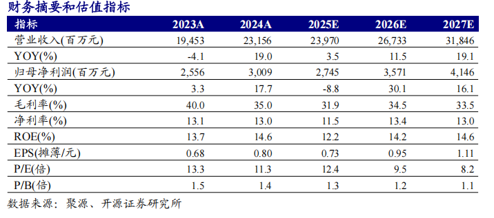 公司发布2025年中报,2025H1公司实现营业总收入98.62亿元,同比-6.74%;归母净利润13.34亿元,同比-13.5%;扣非归母净利润13.29亿元,同比-14.0%。2025Q2单季度实现营收46.61亿元,环比-10.4%;归母净利润6.3亿元,环比-10.3%;扣非归母净利润6.3亿元,环比-9.8%。煤价下滑有望利好电力成本端,我们适当调整盈利预测,预计2025-2027年公司归母净利润27.5/35.7/41.5亿元(2025-2026年前值为30.6/35.9/43.2亿元),同比-8.8%/+30.1%/+16.1%;EPS为0.73/0.95/1.11元,对应当前股价PE为12.4/9.5/8.2倍。公司煤电业务成长重视产业链协同,兼具一体化布局,高分红凸显投资价值,维持“买入”评级。