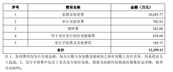中电港本次发行费用共计12,359.11万元,其中,承销及保荐费为10,645.77万元。