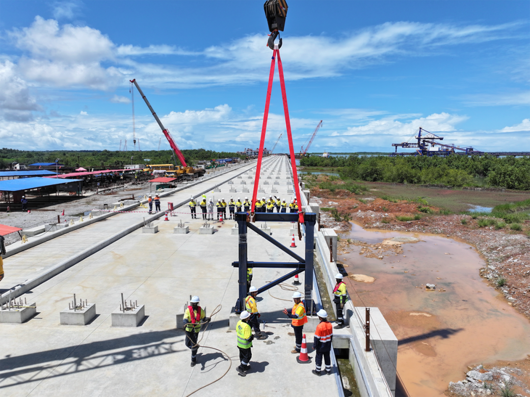 2025年9月12日,由运机集团承建的几内亚力拓西芒杜港口项目皮带机工程,迎来历史性时刻:顺利完成EPC1(Engineering Procurement Construction 1)引桥段首根立柱安装,标志着该项目正式进入主体施工阶段。