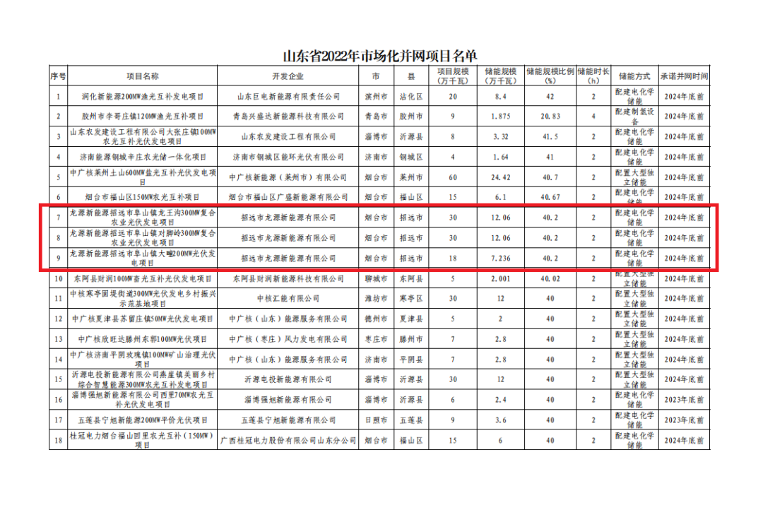 12月12日,山东省能源局公示2022年市场化并网项目名单,龙源电力山东公司招远780兆瓦光伏发电项目入选。