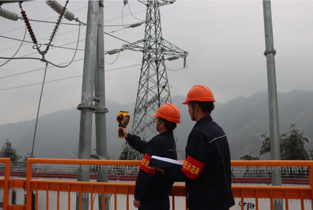 图丨龙源湖北公司党员青年对送出线路挂冰情况进行检查