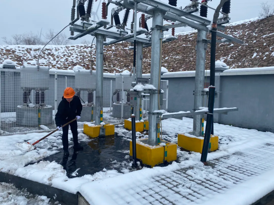 面对近日寒潮暴雪天气,龙源内蒙古公司乌兰察布区域维保中心青年安全生产示范岗,聚焦青年作用发挥,带头开展雪后特巡相关工作,及时掌握设备运行状况,及时消除设备隐患,确保站内设备在极端天气中安全可靠运行,保障能源可靠供应。