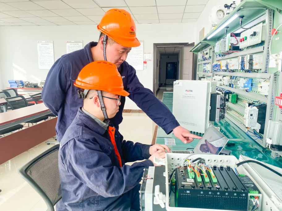 龙源蒙东公司青年员工对在线振动设备数采器进行IP配置