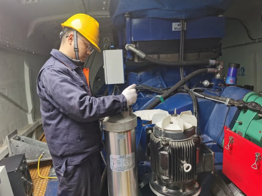 图丨龙源湖南公司青年员工检查齿轮箱润滑系统
