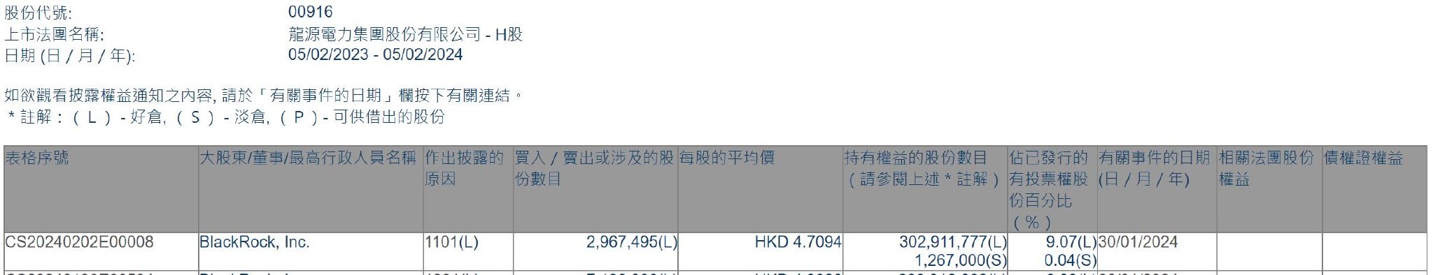 香港联交所最新资料显示,1月30日,贝莱德增持龙源电力(00916)296.7495万股,每股作价4.7094港元,总金额约为1397.51万港元。增持后最新持股数目约为3.03亿股,最新持股比例为9.07%。