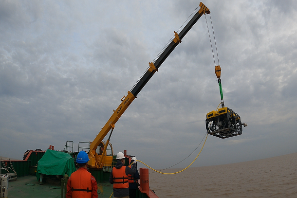 扫测过程中,水下机器人搭载海缆路由埋深装置和图像声呐,根据磁场变化确定海缆水下坐标,自主巡航并对海缆路由、埋深数据进行标定,准确识别海缆的裸露和悬空;在风机桩基附近,对桩基进行360度全方位扫测,精准探测桩基涡流冲刷引起的空穴坑和“J形管”中心夹具下沉,为海上风电场设备运行状态提供第一手资料。