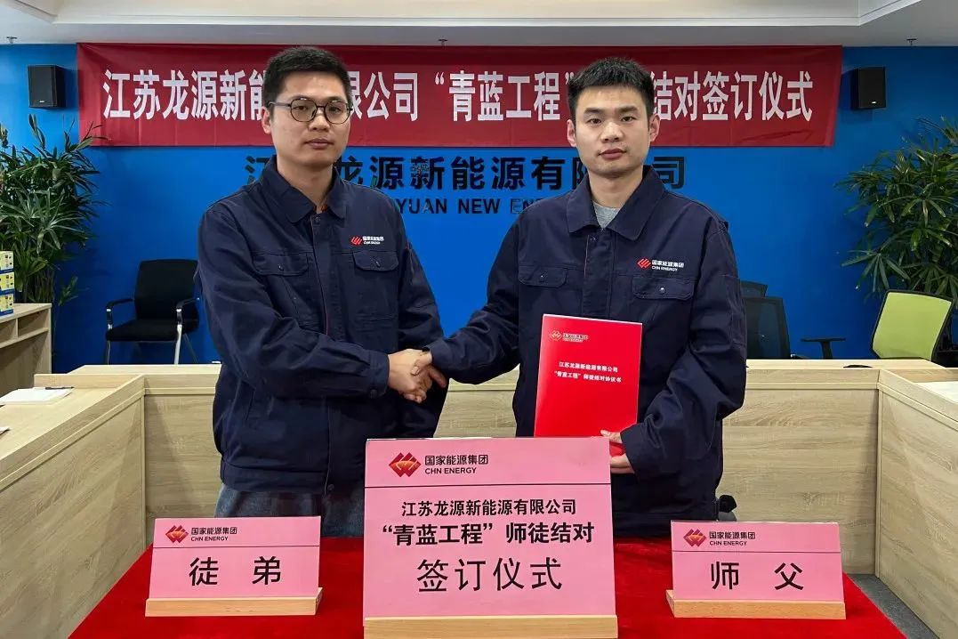 2024年4月,来自龙源电力江苏公司4个维保中心、7座风电场的21对师徒齐聚一堂,签订结对协议书,“青蓝工程”的传承薪火就此点燃。