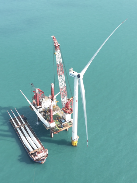 风光并举、海陆并进,正是“十四五”期间我国清洁能源跨越式发展的生动写照。沿着海原的经度线一直向南大约2000公里,来到海南省东方市感城镇海域,龙源电力的又一个海上风电项目正处于攻坚阶段。单机容量达14兆瓦的风电机组宛如潜龙在渊,向人们宣示着海南建设清洁低碳岛的新进展。