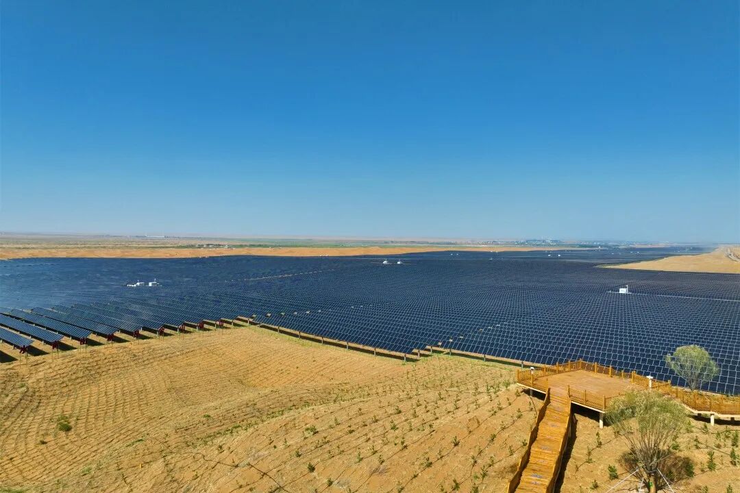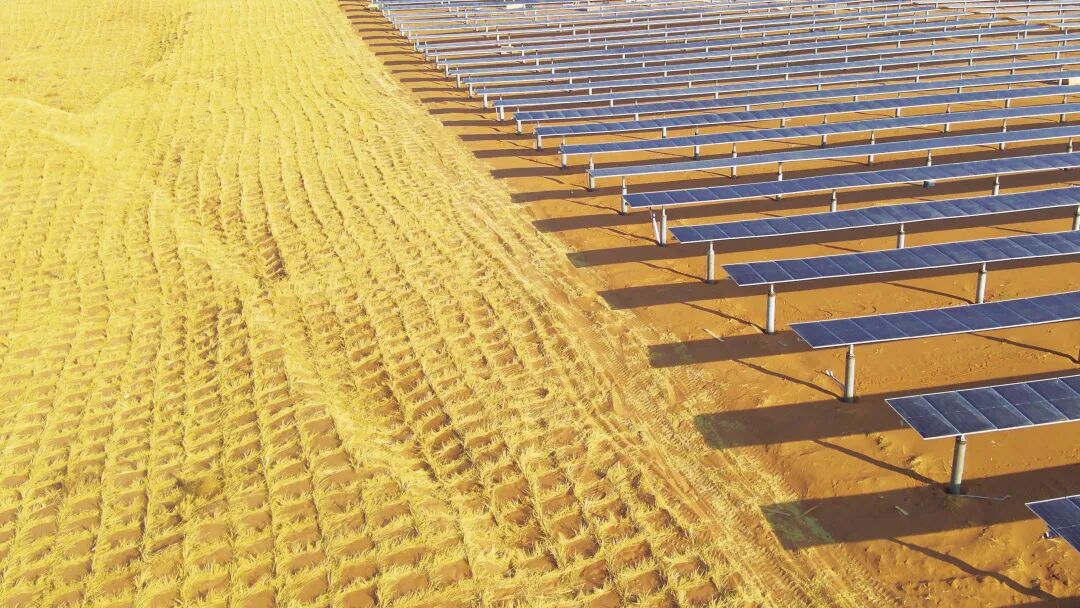图为宁夏腾格里“沙戈荒”新能源大基地