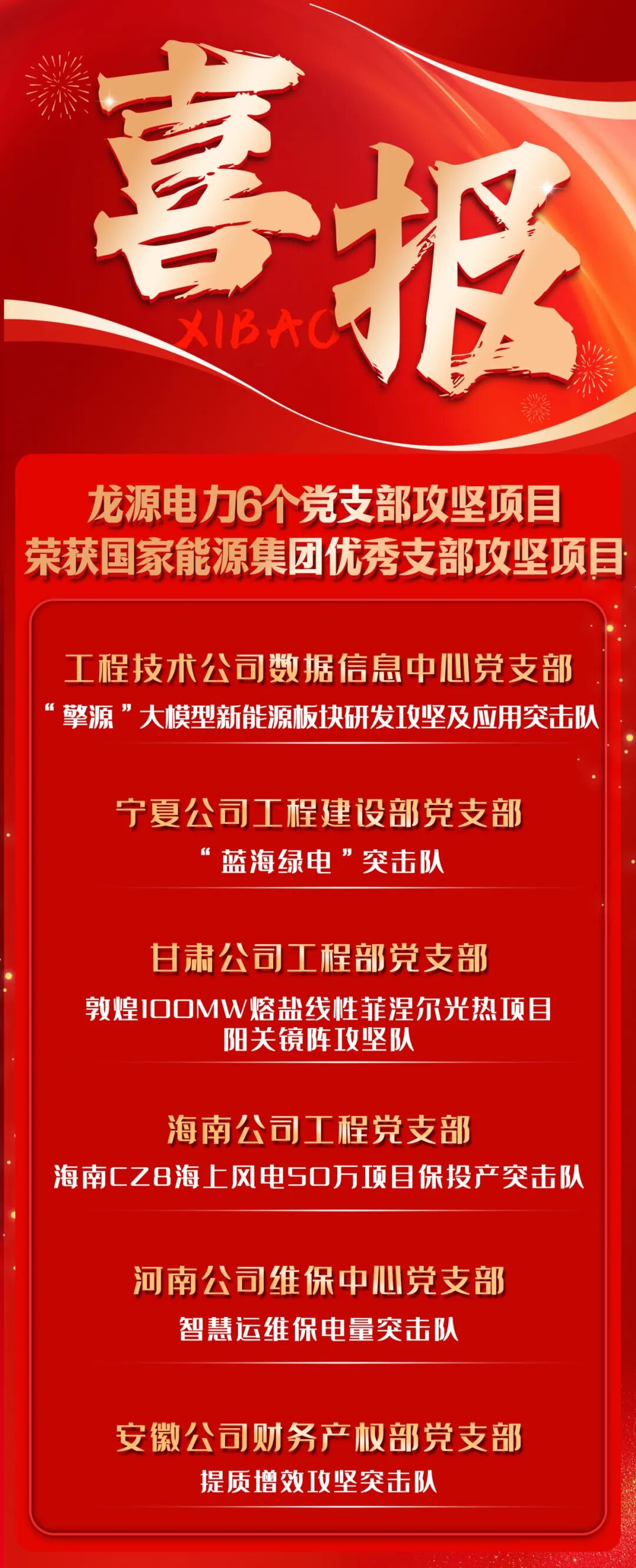 近日,集团公司印发《关于表彰国家能源集团优秀党支部项目的通知》,龙源电力6个党支部攻坚项目荣获国家能源集团优秀党支部攻坚项目。