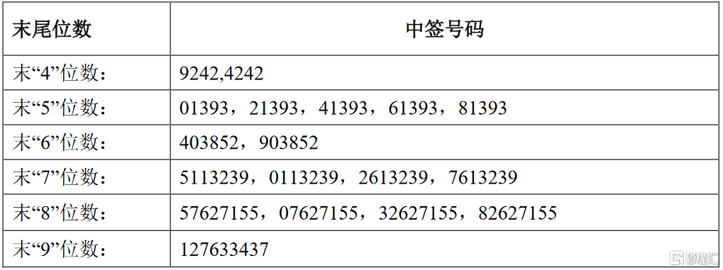 凡参与网上定价发行申购深圳市好上好信息科技股份有限公司股票的投资者持有的申购配号尾数与上述号码相同的,则为中签号码。中签号码共有4.32万个,每个中签号码只能认购500股深圳市好上好信息科技股份有限公司股票。