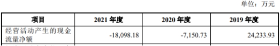 2019年-2021年,好上好营业收入分别为411,912.06万元、526,064.90万元、684,093.50万元,销售商品、提供劳务收到的现金分别为419,879.84万元、504,027.62万元、694,525.12万元;净利润/归属于母公司股东的净利润分别为5,290.14万元、11823.09万元、18,648.83万元,经营活动产生的现金流量净额分别为24,233.93万元、-7,150.73万元、-18,098.18万元。