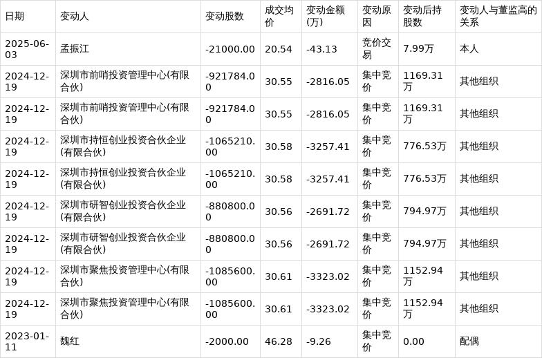 深交所公开信息显示,6月3日,好上好高管孟振江在竞价交易公司股票,减持股数2.10万股,成交均价20.54元,变动金额43.13万元,变动后持股数为7.99万股。
