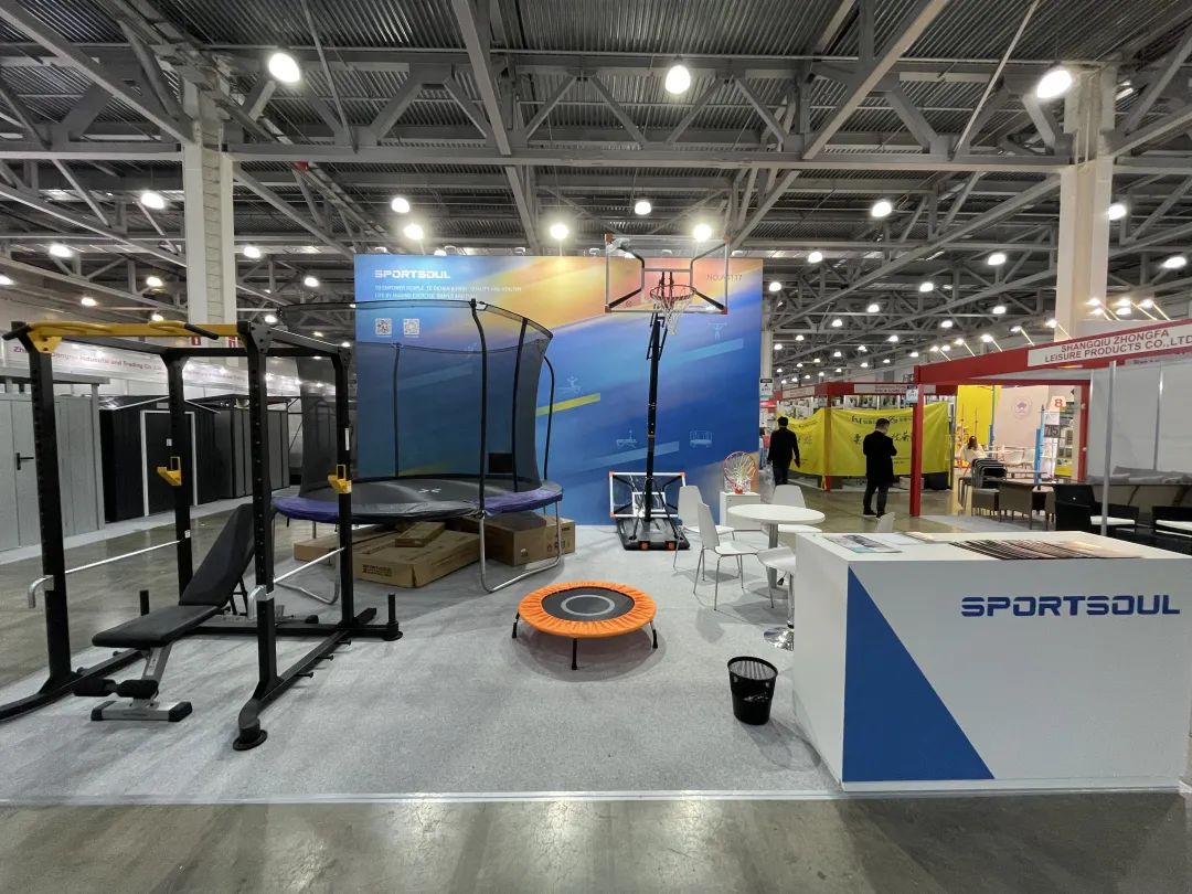 本次三柏硕携旗下休闲体育产品参展:X系列篮球架、新品蹦床系列和家用健身设备等。