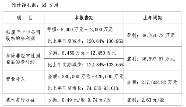 2025年上半年业绩预告显示,公司预计营业收入为38亿元-42亿元,同比增长74.63%-93.01%;归母净利润亏损金额为8000万元-1.2亿元,同比由盈转亏。