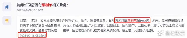 不过,在预制菜赛道,粤海饲料还是一个新晋玩家。根据公开资料显示,2022年初,粤海饲料还未开展预制菜相关业务。