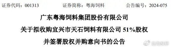 此外,粤海饲料还在筹备收购宜兴市天石饲料有限公司51%股权,并签署了股权并购意向书。