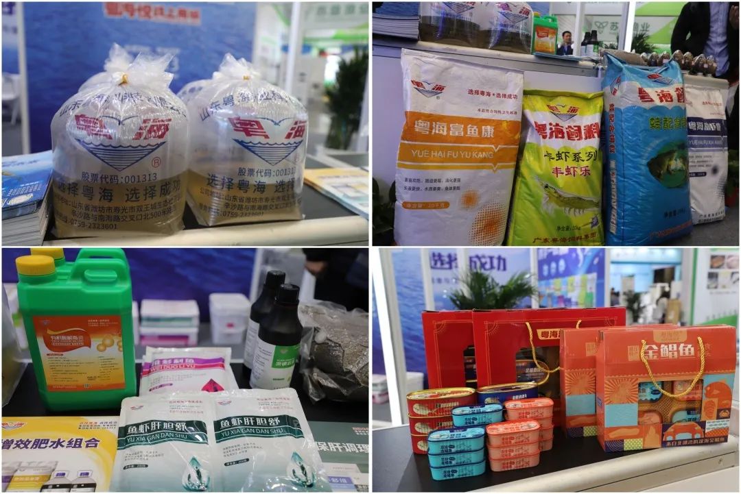 ▲粤海饲料展会现场展示种苗、饲料、动保等核心产品