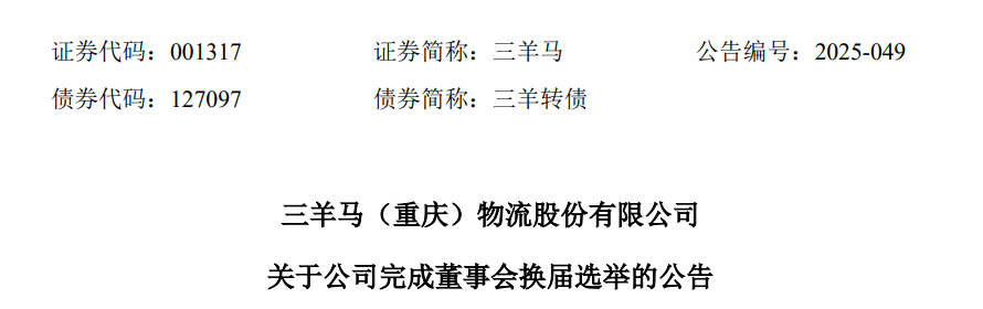 6月23日,三羊马(001317.SZ)召开2025年第二次临时股东大会,选举任敏、孙杨、何昱为公司第四届董事会非独立董事,选举徐辉、冷开伟、宋夏虹为第四届董事会独立董事,他们将与职工代表董事邵强一起组成公司新的董事会班子。在随后召开的公司第四届董事会第一次会议上,任敏全票当选为董事长及董事会战略发展委员会主任委员。