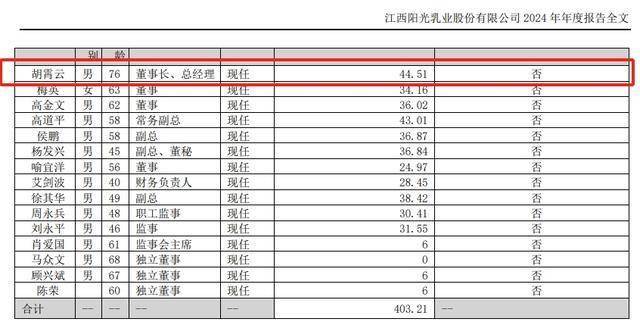 在管理层薪酬方面,阳光乳业2024年董事、监事和高级管理人员的报酬总额为403.21万元。其中,公司董事长胡霄云以44.51万元的年薪位列全公司最高。胡霄云,作为公司的灵魂人物,不仅拥有丰富的管理经验和卓越的领导能力,还多次荣获省市“劳动模范”和“优秀企业家”等荣誉,并在中国乳制品工业协会首届金牛奖上被授予“中国乳业十大最受尊重企业家”称号,展现了其在中国乳业界的杰出贡献。