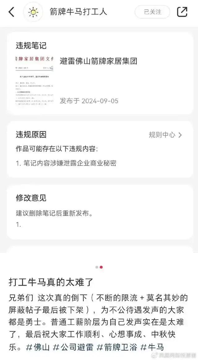 事情的起因是,有员工发帖曝光箭牌家居“放4补3”,在被删帖之后,将昵称改为了“箭牌牛马打工人”,而这也引发了更多员工在相关话题内讨论声援。