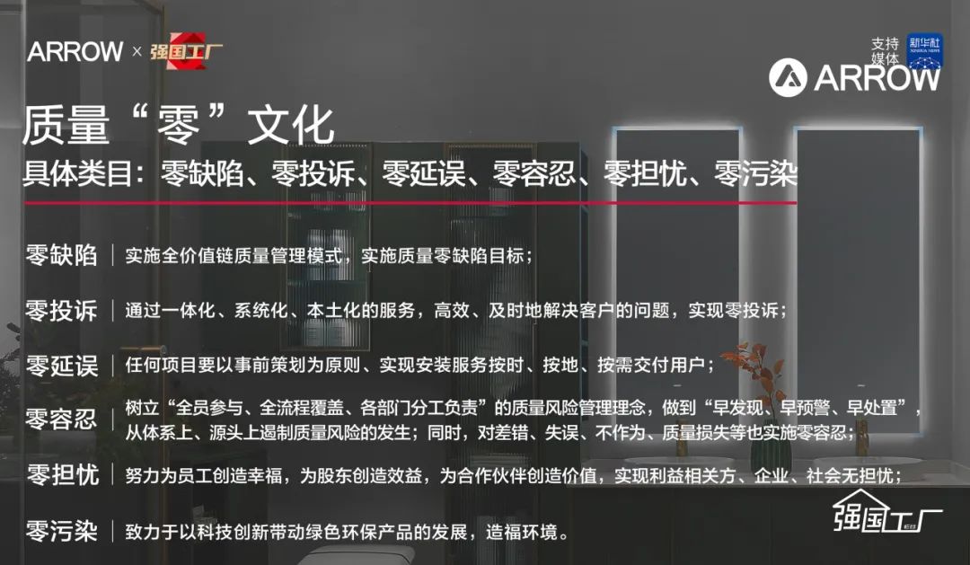 质量是企业的生命线,是企业赢得市场、树立品牌形象的关键。在箭牌家居,早就形成了独具一格的质量“零”文化,即零缺陷、零投诉、零延误、零容忍、零担忧、零污染。这一文化理念深入企业的骨髓,贯穿于产品研发、生产、服务的每一个环节,确保了顾客满意度的持续提升和市场份额的稳步扩大。