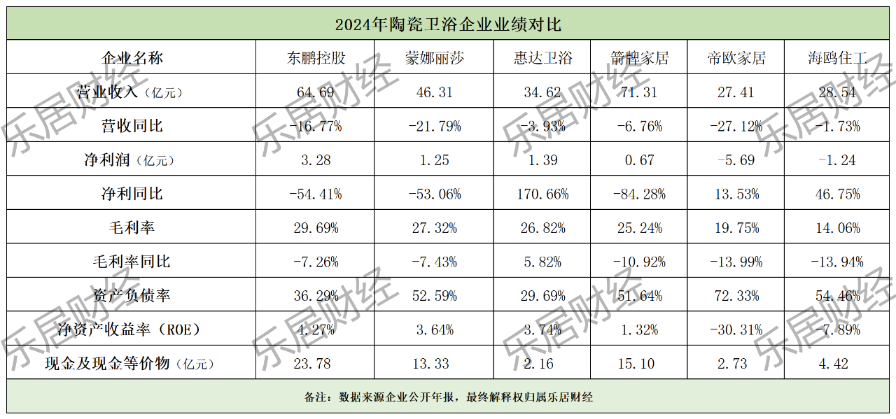 5月14日,乐居财经从营收、净利、负债率、资金、毛利率等维度对6大上市陶卫企业进行业绩对比。