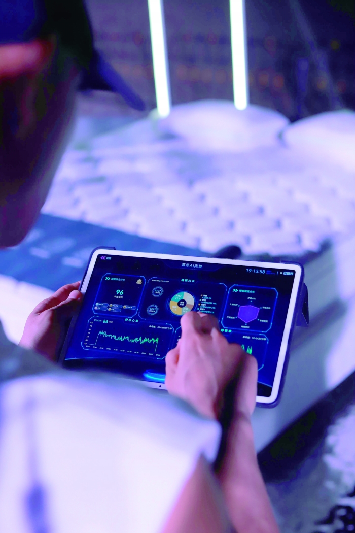 “基于慕思股份多年的研发沉淀、更迭8代的健康睡眠系统数据,我们自主研发了AI应用‘潮汐算法’,这是国内首创的软体家具行业AI算法。”姚吉庆说。