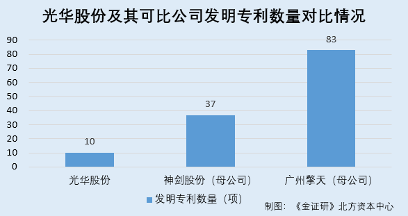 截至2021年12月31日,光华股份母公司、神剑股份母公司、广州擎天母公司获得的发明专利数量分别为10项、37项、83项。