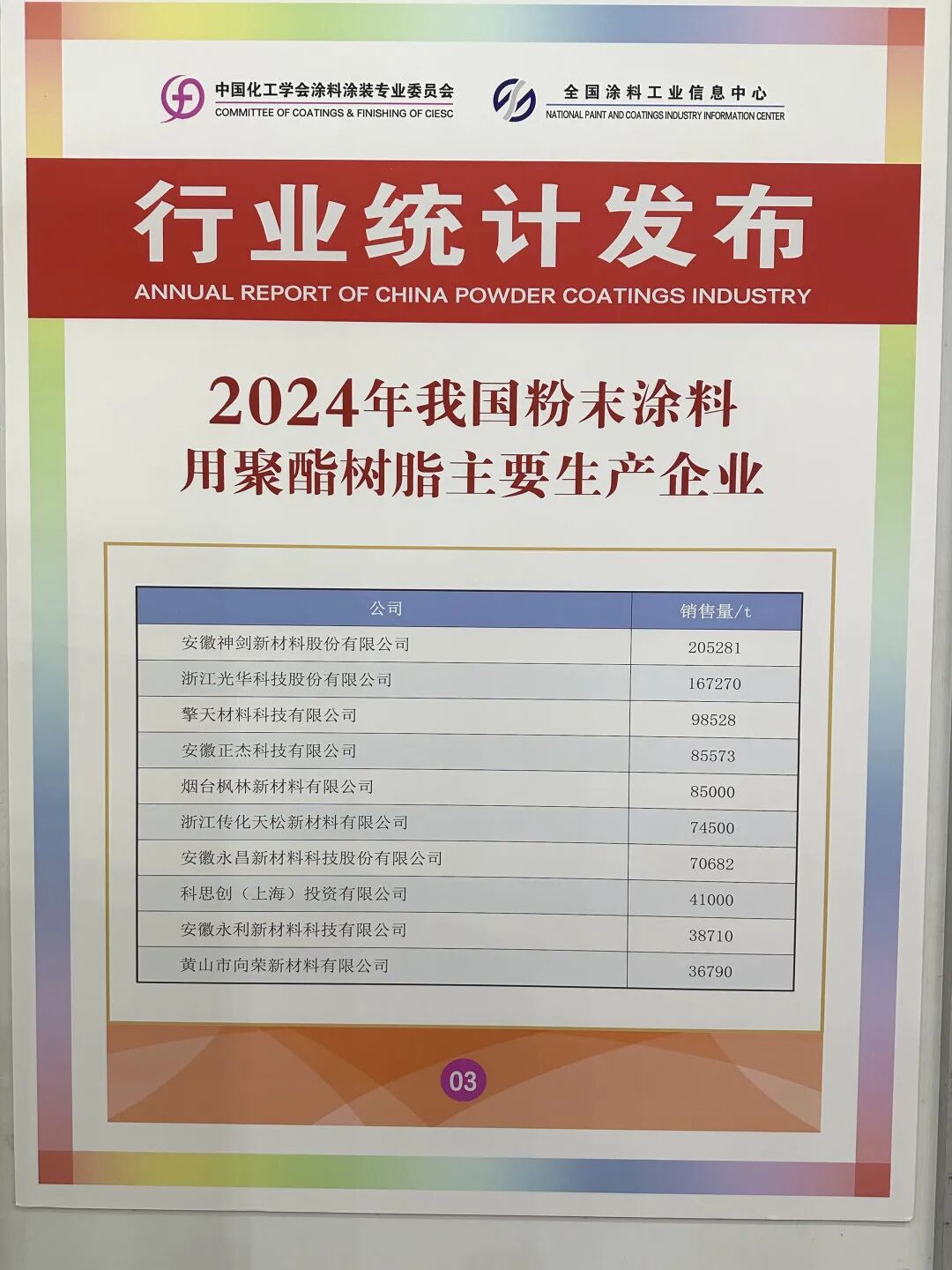 本次年会,全国涂料工业信息中心公布了2024年度行业数据排名。光华股份凭借出色的市场表现,荣获“2024年粉末涂料用聚酯树脂销售量排名位居国内同行业第二名”的权威认证。